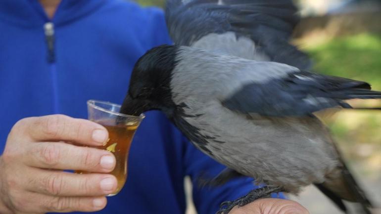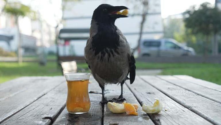 OTOBÜS KAPTANININ ‘GURME’ KARGASI ORGANİK GIDALARI SEVİYOR