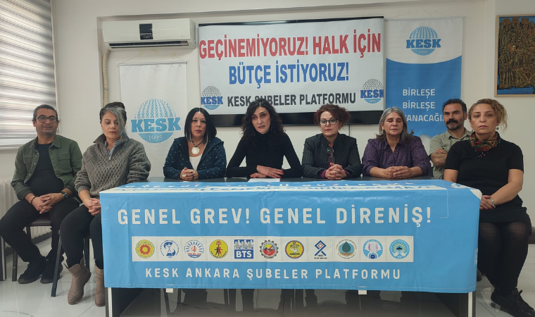 KESK’in 2026 bütçesine ilişkin görüşlerini ve bütçe eylem takvimini aktaran KESK Ankara Şubeler Platformu Eş Sözcüsü Zelal Anğay, bütçenin harcadığı her 100 liranın 47’sinin sermayeye gittiğini söyledi. Anğay,“ Bütçe toplumsal sorunları çözmüyor, daha da derinleştiriyor. 2026 bütçesi bir sosyal yıkım bütçesidir. Türkiye, bu bütçeyle daha karanlık bir tabloya sürükleniyor. 2026 bütçesi; halkın değil patronların bütçesidir” dedi ve KESK’in 6 Aralık’ta Ankara’da büyük bir bütçe mitingi yapacağını duyurdu.