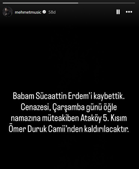 Konserleriyle çok konuşulan, müzik listelerinde şarkıları yer alan Mehmet Erdem, bu kez acı bir haberle gündeme geldi. Erdem, babasının ölüm haberini sevenleriyle paylaştı. Erdem açıklamasında,